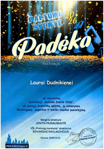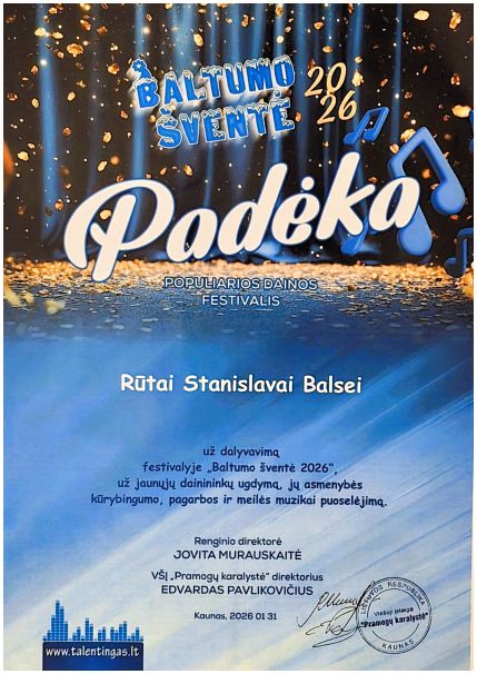 Studija dalyvavo Kaune vykusiame populiariosios dainos festivalyje „Baltumo šventė 2026“. Laikas festivalyje prabėgo nepastebimai – kupinas muzikos, dainų, ir gerų emocijų. Smagiausia, jog šias akimirkas visi išgyveno kartu, draugų, bičiulių ir artimų žmonių apsuptyje. Ypač įsimintini šie potyriai buvo pirmą kartą ant scenos žengusiems dainininkams!