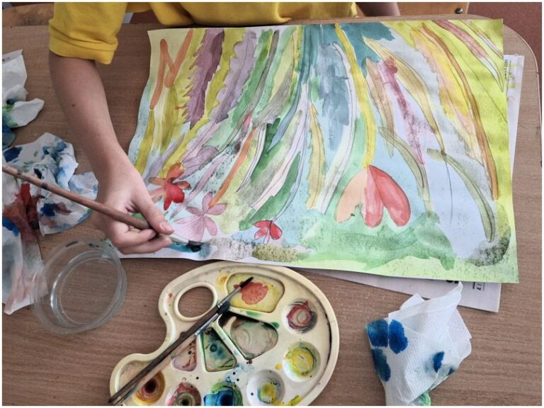 Kūrybos sparnais vaikai skrenda į platų vaizduotės pasaulį, kuriame kiekvienas potėpis ar linija tampa asmenine istorija.