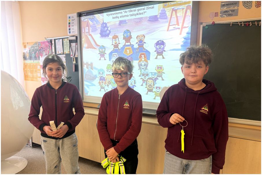 Šiais metais pirmąjį iššūkį „Ar tikrai gerai žinai kelių eismo taisykles?“ drąsiai priėmė Šiaulių „Romuvos“ progimnazijos 4b klasės mokiniai. Net 21 mokinys varžėsi tarpusavyje, siekdamas įrodyti, kas klasėje geriausiai išmano kelių eismo taisykles. Dalyviams teko atsakyti į 32 įvairius klausimus – nuo kelio ženklų iki saugaus elgesio gatvėje.