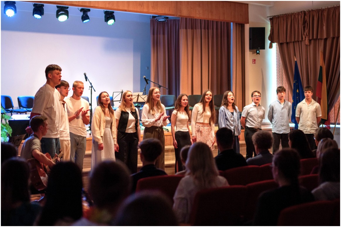 Studija drauge su Šiaulių „Romuvos“ gimnazijos choru „Bene Notes“ ir ansambliu „Fresco” (vad. Aušra Kardašienė) kūrė ypatingą nuotaiką, kurioje sustojo laikas – kad galėtų jaunimas dar pasidžiaugti akimirkomis, muzika ir vieni kitais. ![]()