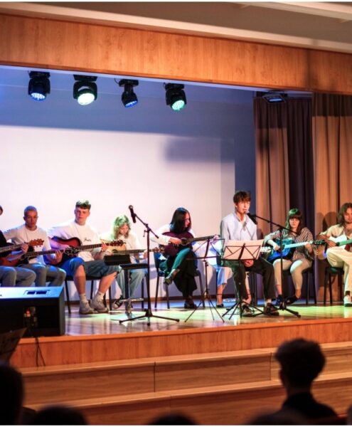 Šiaulių menų mokyklos muzikos studija „Šešios stygos“ su vadovu Dovydu Kaupiu užbaigė mokslo metus jautriu koncertu “Kol kartu”. Tai buvo ne tik muzikinis vakaras – tai buvo šventė, kupina jaukios bendrystės, vidinės šilumos ir muzikos garsų.