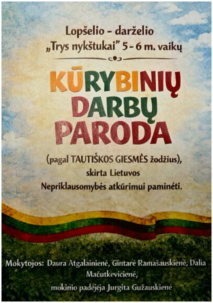 Parodoje itin didelis dėmesys skiriamas lietuvybės puoselėjimui, tautinei simbolikai bei meilės savo šaliai išraiškai. Kviečiame užsukti ir pasidžiaugti vaikų kūryba!