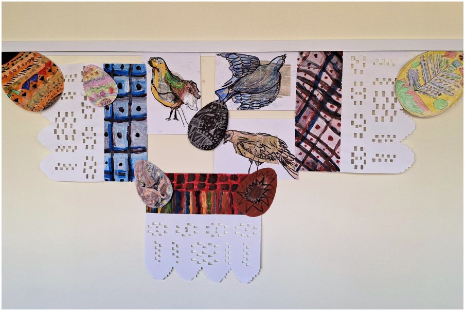 Šv. Velykų belaukiant Šiaulių menų mokyklos dailės būrelio “Dailu” vaikai su mokytoja Sandra Sukarevičiūte sukvietė suskristi margiausius ir gražiausius paukščius į parodą lopšelyje darželyje „Vaikystė“.