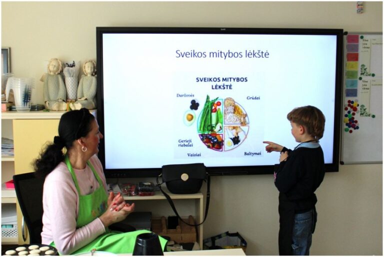 Užsiėmimų metu mokytoja Aneta Salinkienė su vaikais aptaria sveikos mitybos principus, kalbasi apie vandens vartojimo svarbą ir kasdienio judėjimo būtinybę. Mokiniai aiškinasi, kaip turėtų atrodyti subalansuota „sveikos lėkštės“ sudėtis, diskutuoja apie maisto pasirinkimus ir jų įtaką savijautai.