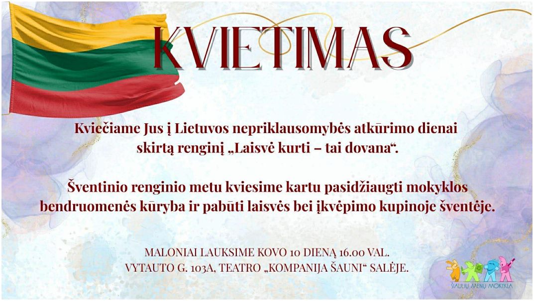 Šiaulių menų mokykla Laisvės gynėjų dieną žuvusiųjų atminimą pažymėjo išskirtiniu projektu. Ant rekordiškai aukštos žvakidės užžiebta 14 atminimo žvakių: 13 – už žuvusiuosius lemtingąją 1991 metų sausio 13-ąją, dar viena – už žuvusius kare Ukrainoje.“Didžiulis dėkingumas žuvusiesiems už mūsų visų laisvę, taip pat jaučiame pareigą išsaugoti atminimą ateinančioms kartoms”, – sakė Šiaulių menų mokyklos pavaduotoja...Skaityti daugiau